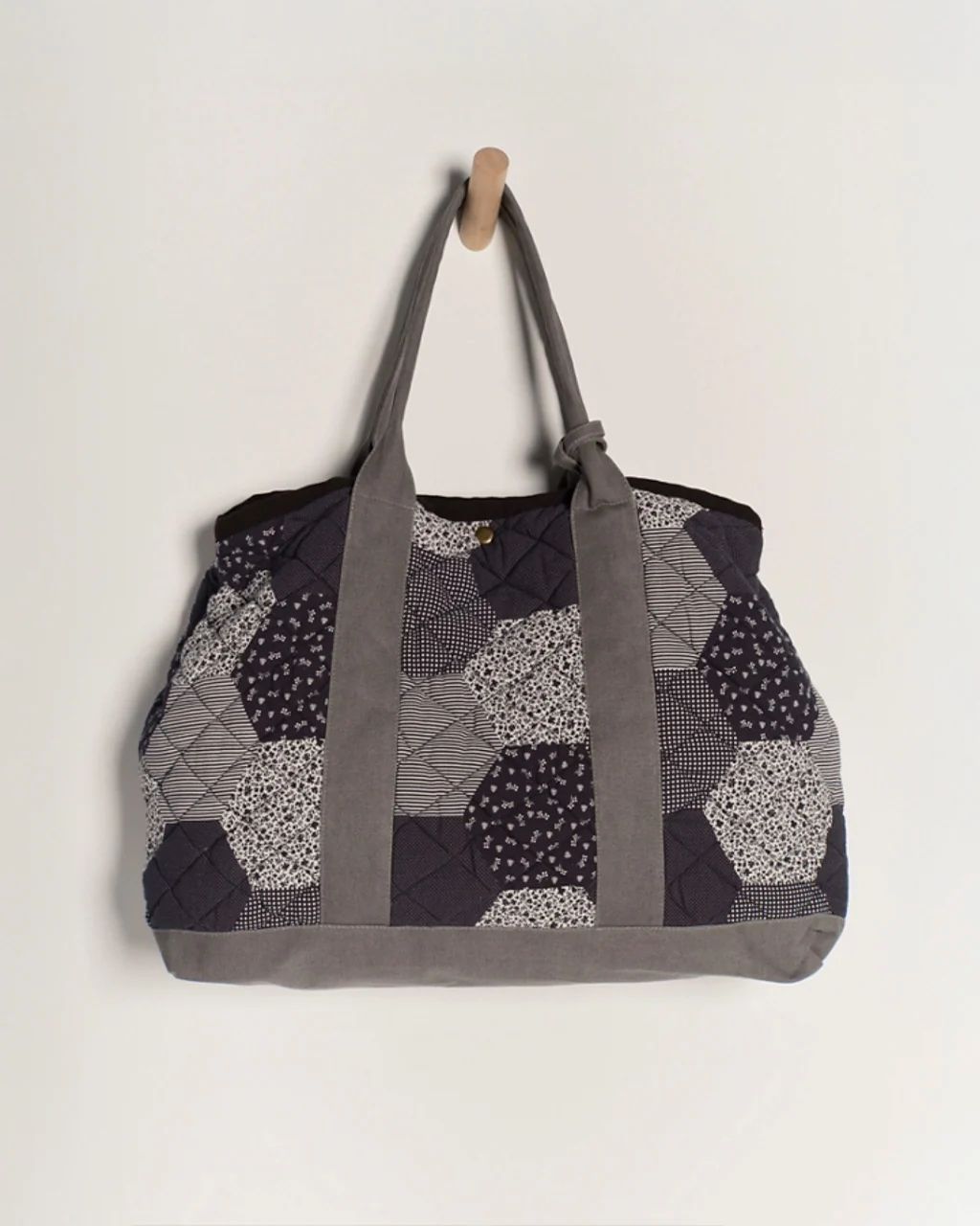 The Pippa Patchwork Tote blends diamond quilting with mixed patterns for a charming patchwork look. Its spacious cotton interior and removable zip pouch keep you organized on the go. Features include a magnetic-snap closure, comfortable shoulder straps, and a flat base for stability.