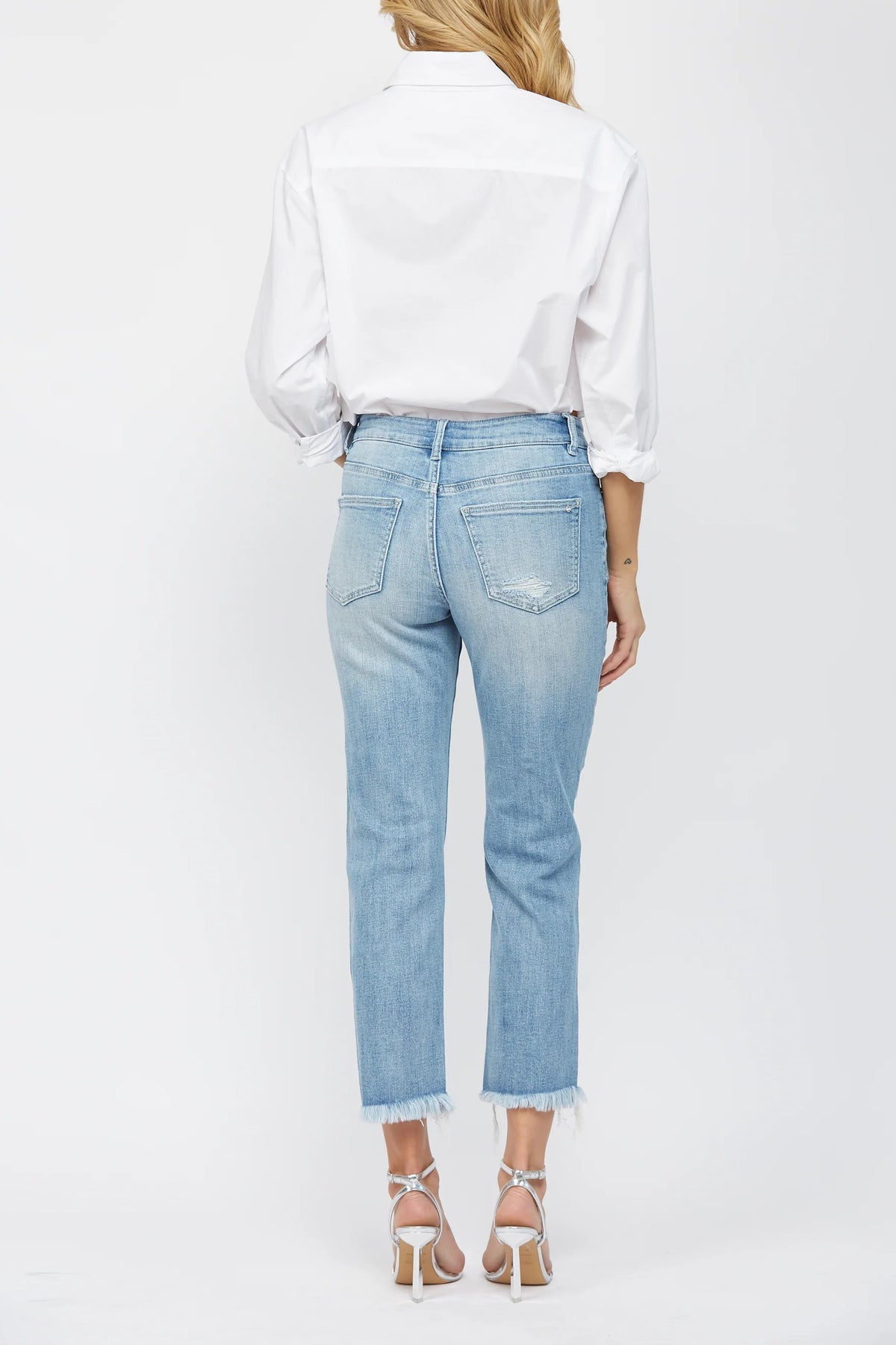 The Bianca Mid Rise Cigarette in Mica offers a classic cropped silhouette with a flattering mid-rise fit. Perfect for versatile styling, this wardrobe essential combines comfort and timeless design effortlessly.