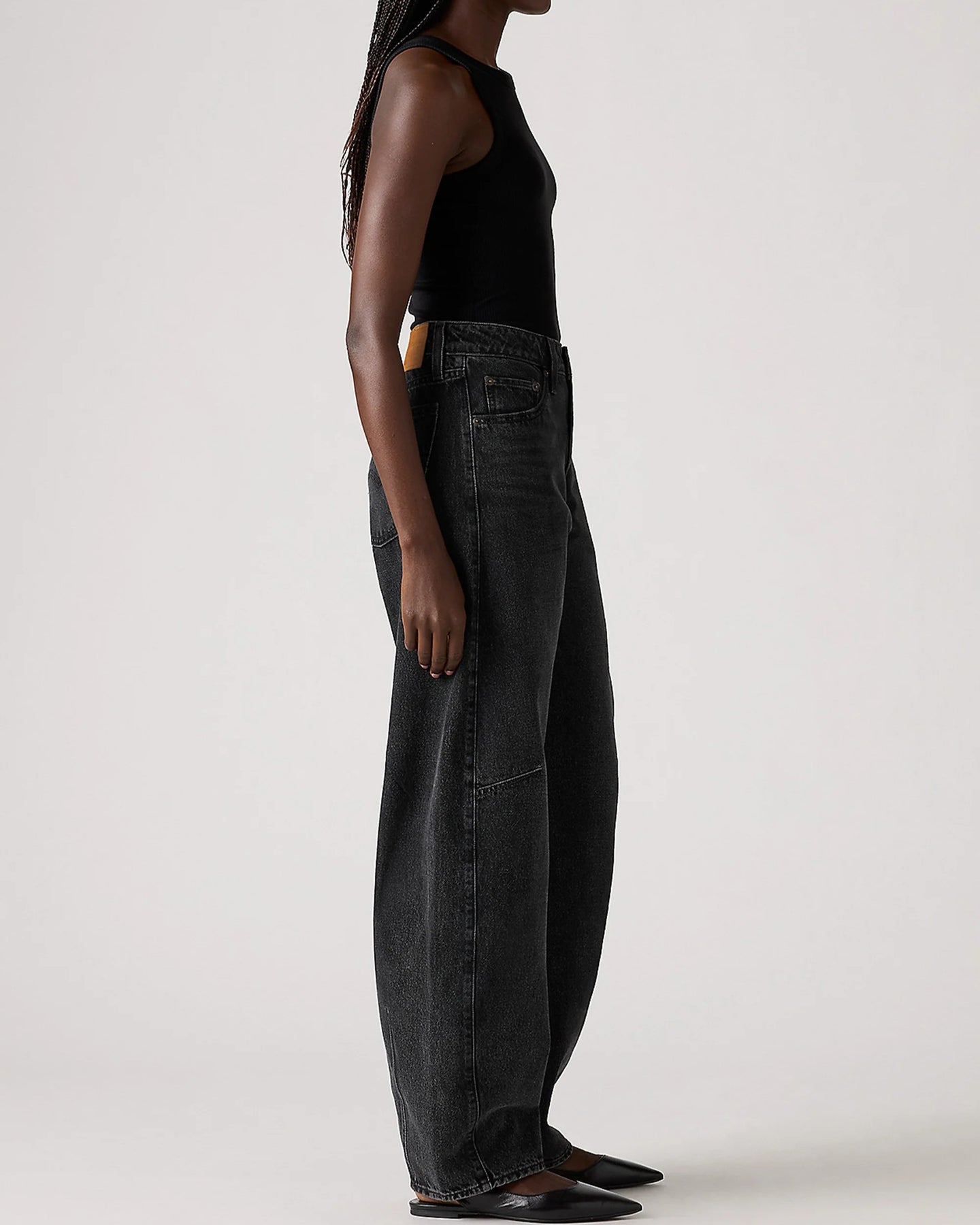 The curved leg is here to stay. These Levi's Baggy Dad Barrel jeans deliver mid-rise comfort with a loose, slouchy fit through the hip and thigh. Featuring knee darts and a just-right curved leg that stacks perfectly at the hem, they're relaxed yet flattering with that subtle edge.