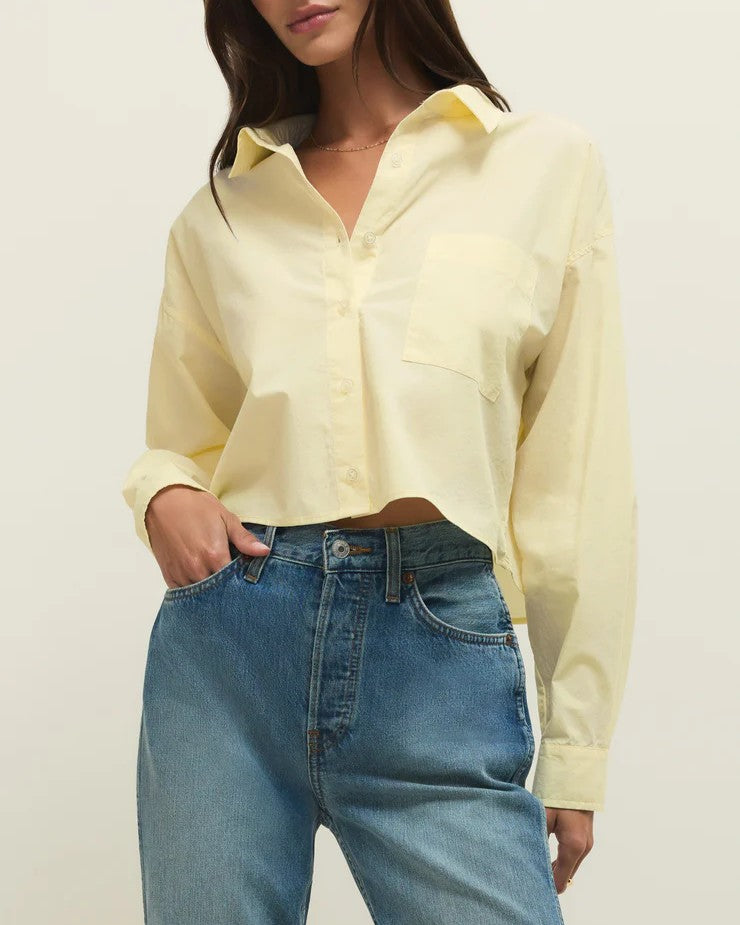 Crisp and lightweight, this cotton poplin button-up instantly elevates any outfit. Designed with a meet-and-greet fit and straight hemline, it feels modern and easy to style with denim, skirts, or tailored pants for a refined everyday look.