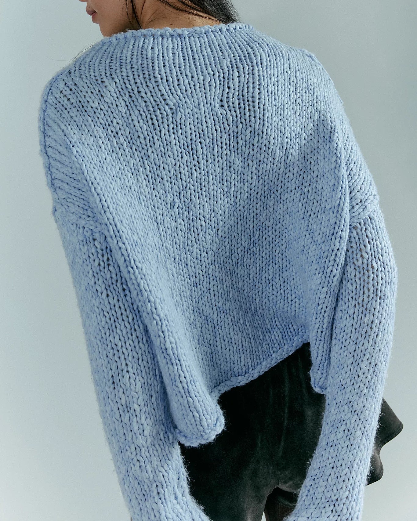 So light and perfect for any-season layering, this staple sweater is featured in an airy cotton knit with a rolled neckline and dropped shoulders for that laidback look.