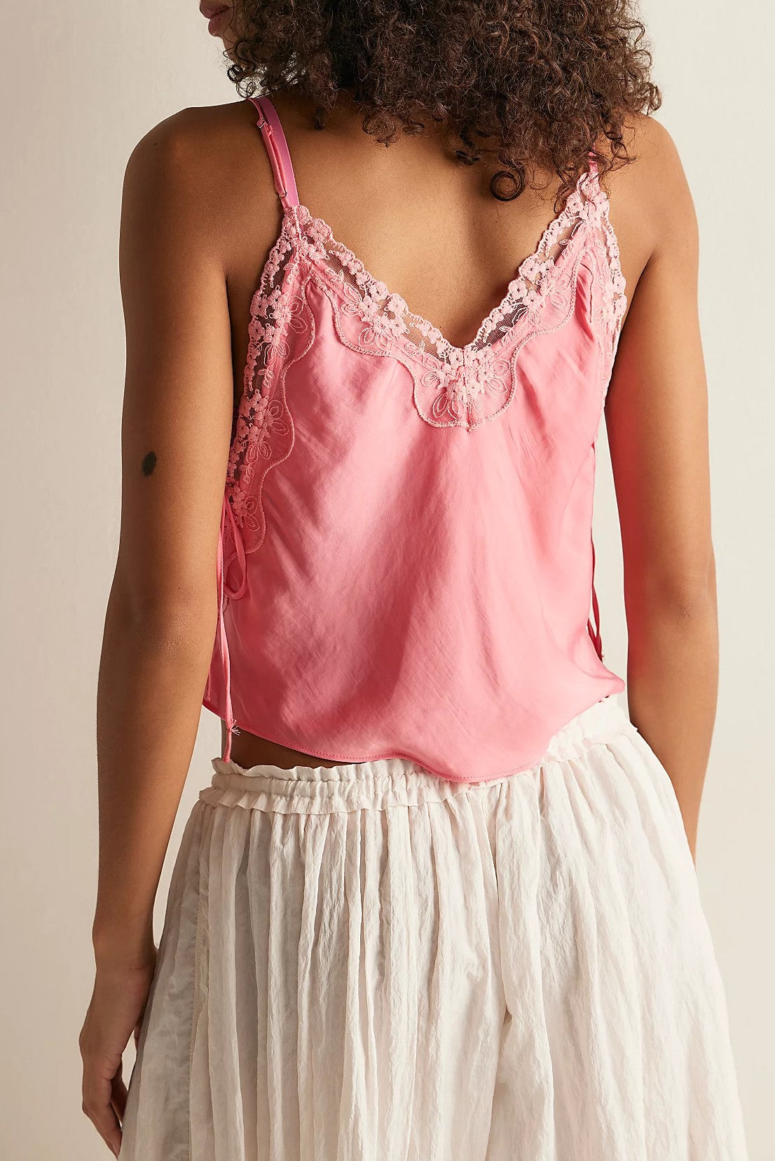 Add a lovely layer to your look with this so sweet cami, adorned with sheer lace trim throughout.