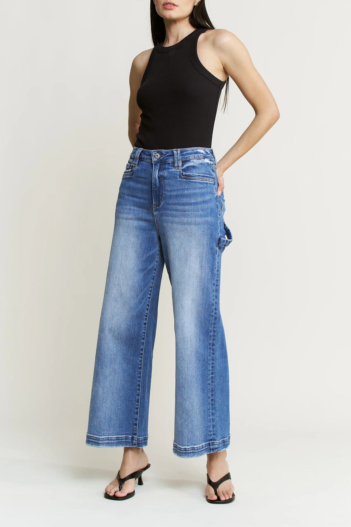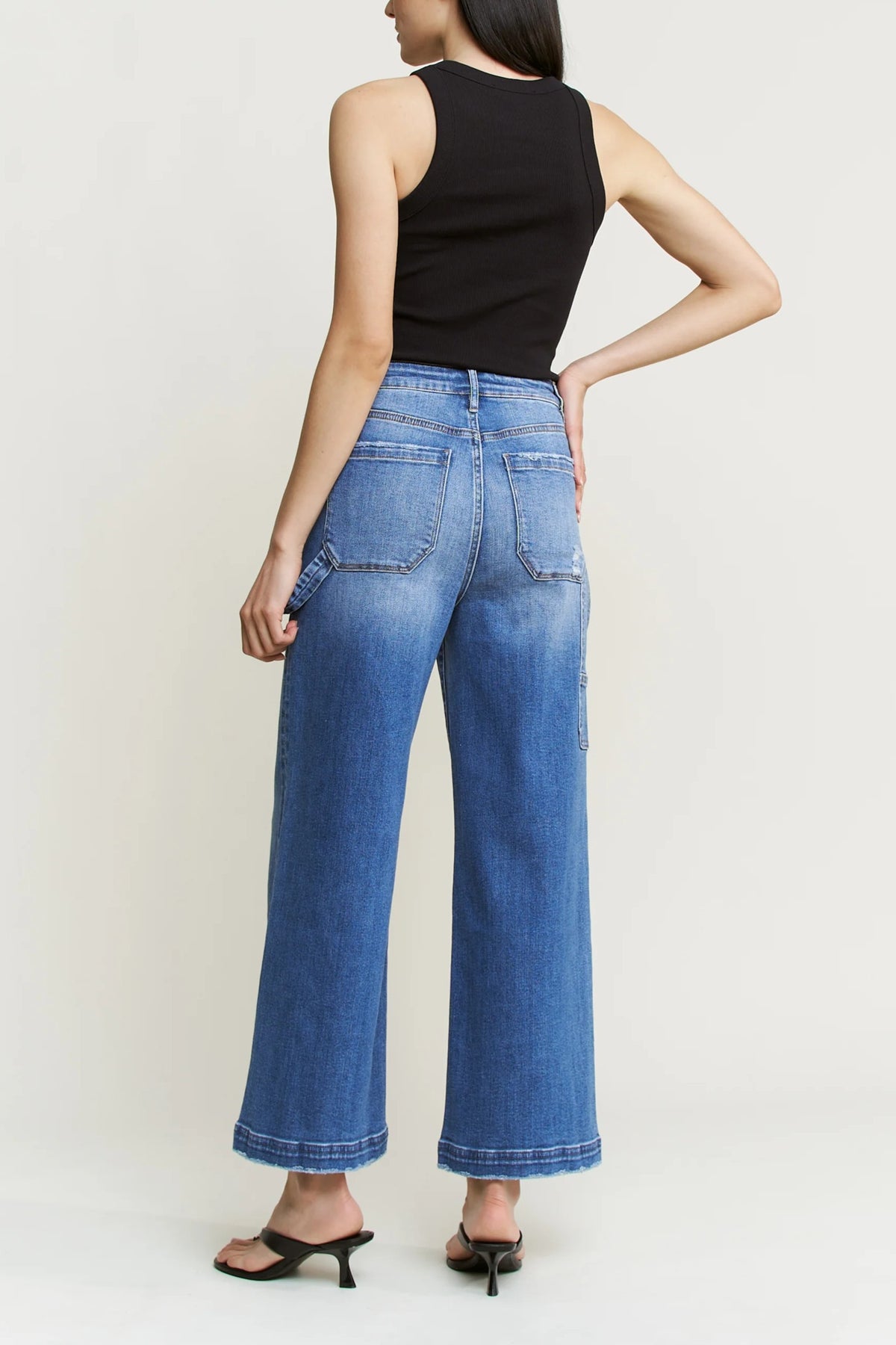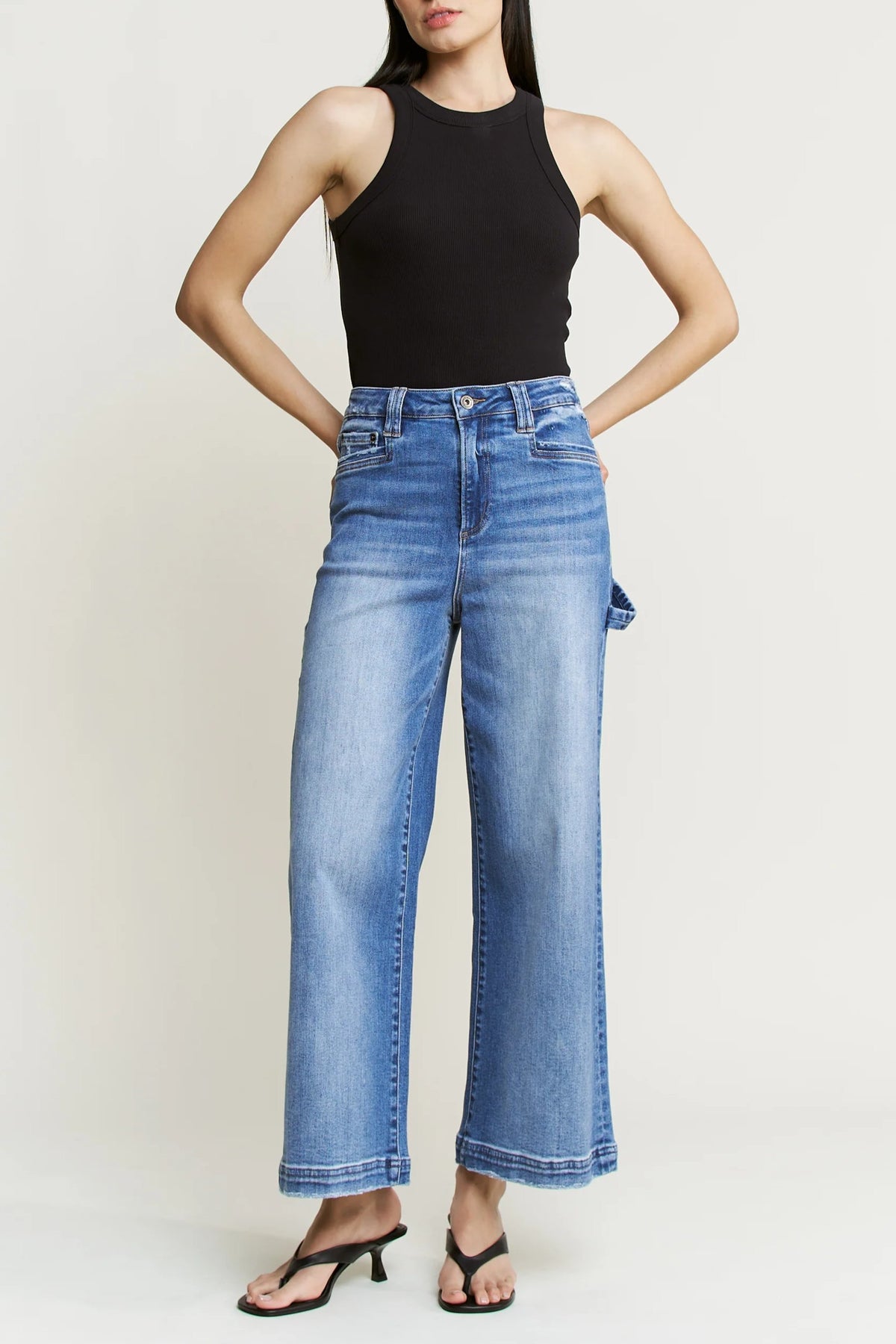Mica Denim - super high rise wide cropped utility pants designed with a modern silhouette and functional details, offering both style and practicality for everyday wear.