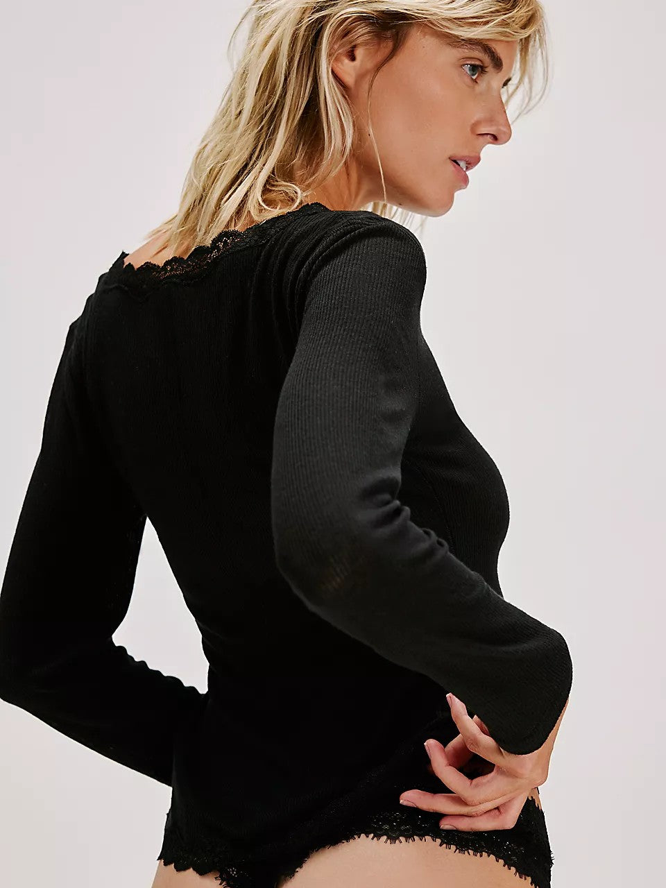 Free People -Achieve effortless style in this comfy cardi from Intimately, featured in a soft ribbed fabrication with lacy trim and dainty button closure.