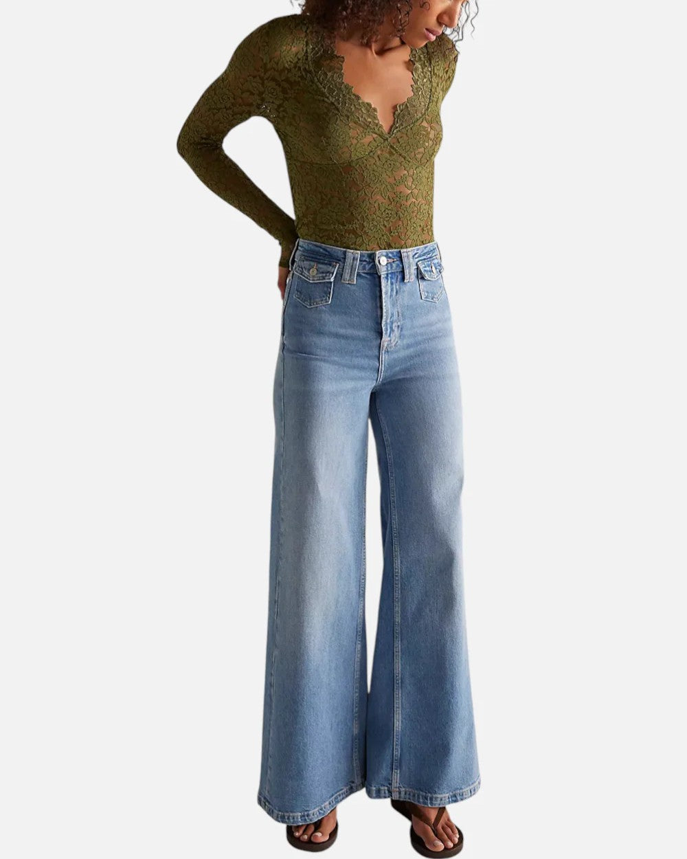 So soft and sweet in sheer lace, this long-sleeve top from Intimately features a flattering V-neckline with seamed details for a totally sensual look.