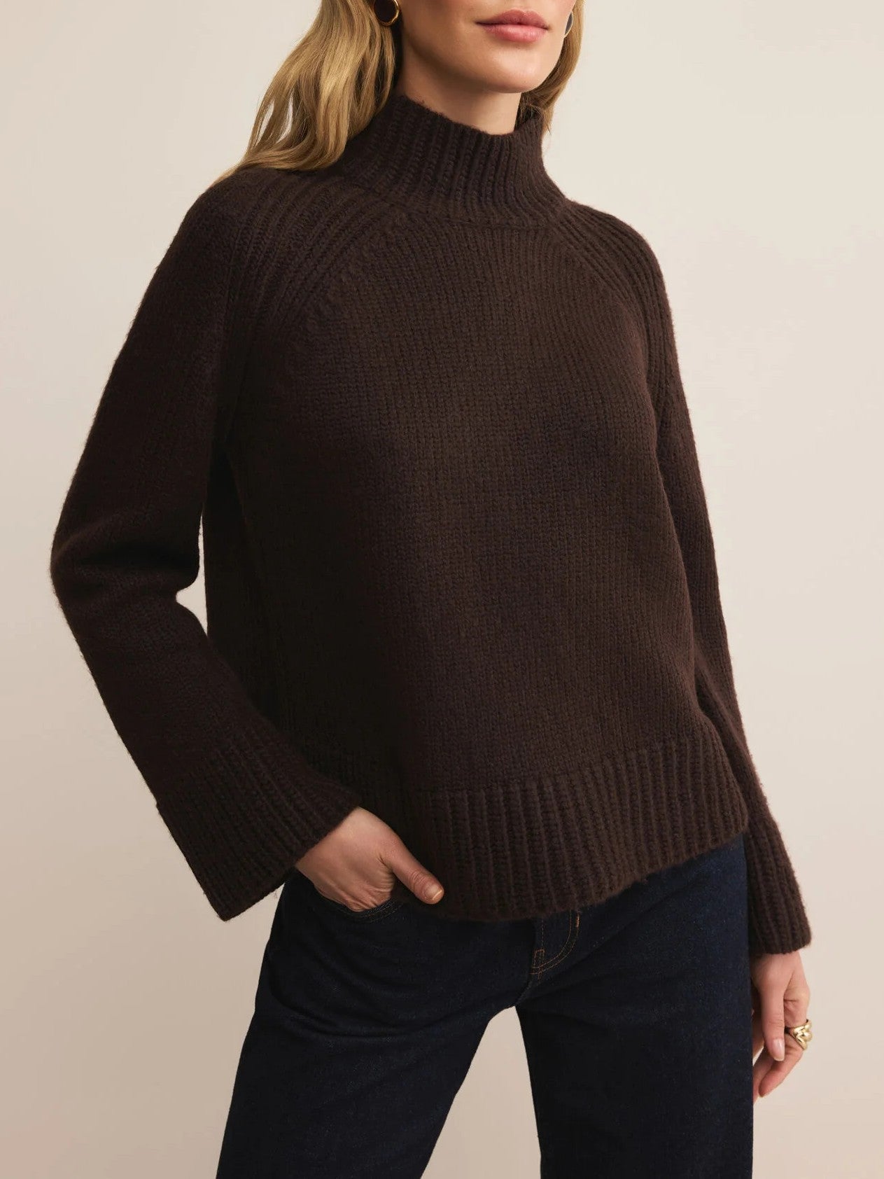 Stay cozy in the Emerge Funnel Neck Sweater, featuring a soft ribbed funnel neck and long sleeves for added warmth. Its relaxed fit and neutral tone make it an easy match for any outfit, perfect for everyday wear.