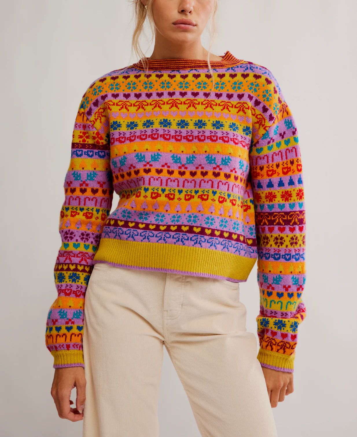 Wrap yourself in comfort with this Free People crewneck sweater, featuring a playful pattern that brings personality to your everyday wardrobe. The cozy knit makes it perfect for layering or wearing solo, whether you're relaxing at home or out with friends. A versatile piece that feels as good as it looks.