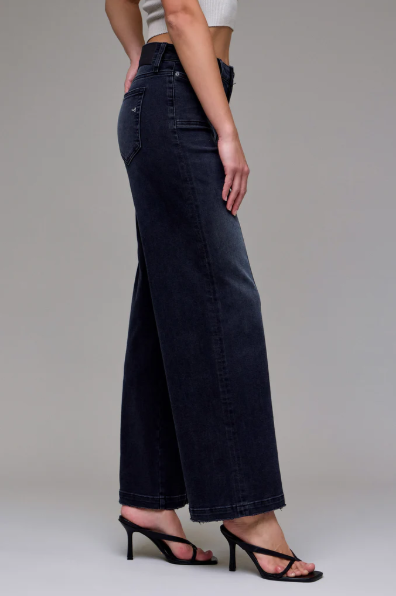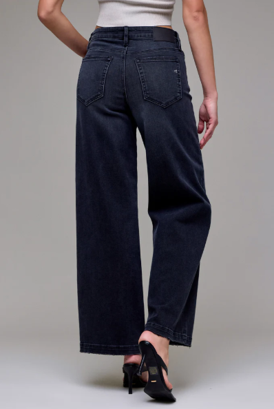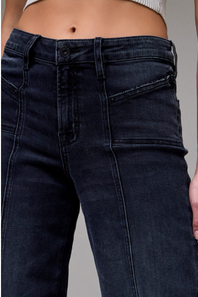 These mid-rise wide-leg jeans feature a 31" inseam and a unique front seam detail for a modern, stylish look. Perfect for adding a bold touch to your wardrobe while keeping comfort and fit in focus.