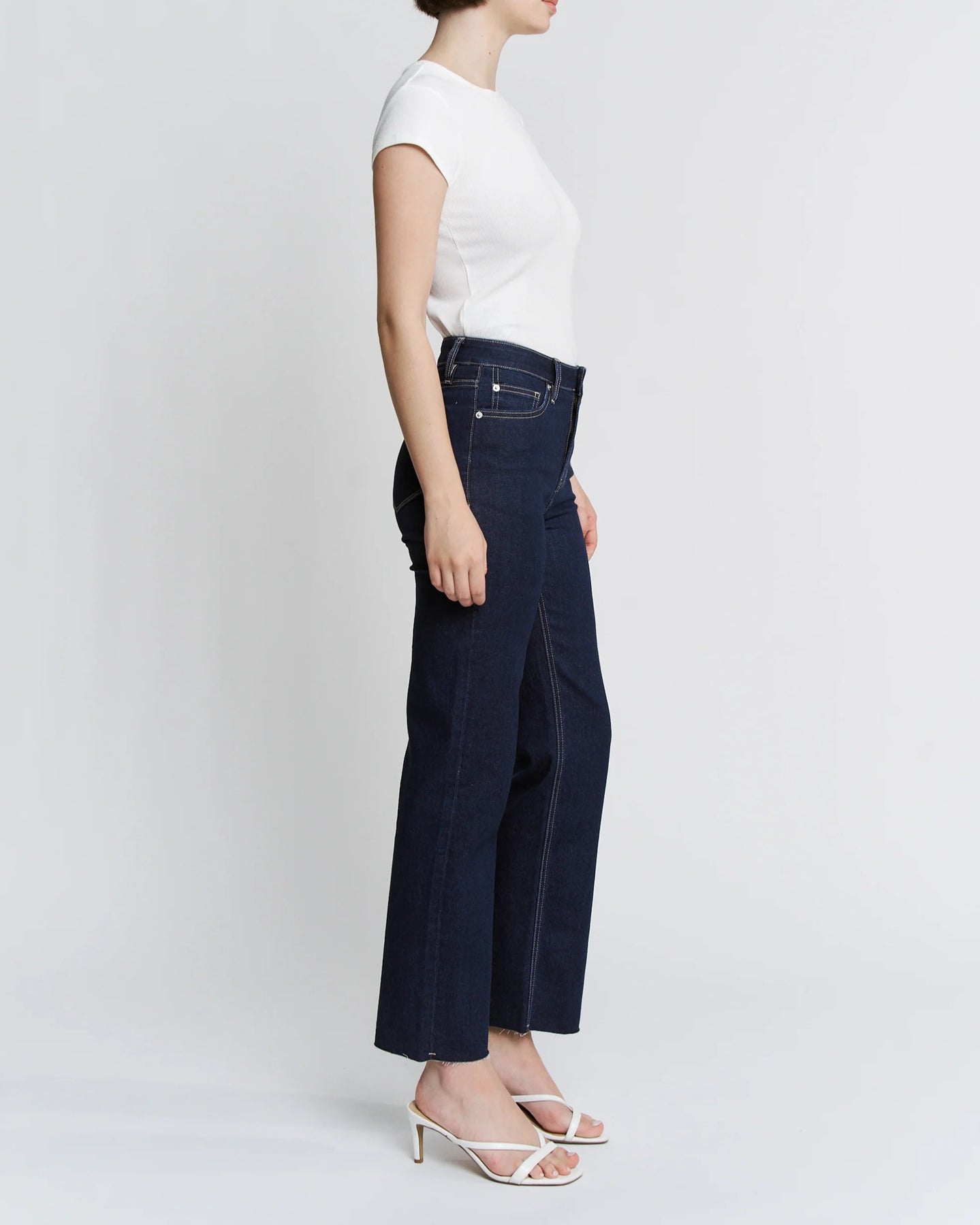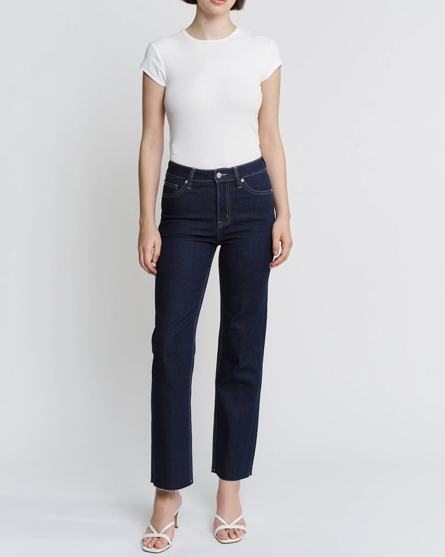High-rise straight ankle with a touch of shimmer. The Pomeroy delivers clean lines and a flattering fit in a glitter-enhanced fabric that catches the light. Perfect for elevating your everyday look with subtle sparkle and timeless silhouette.