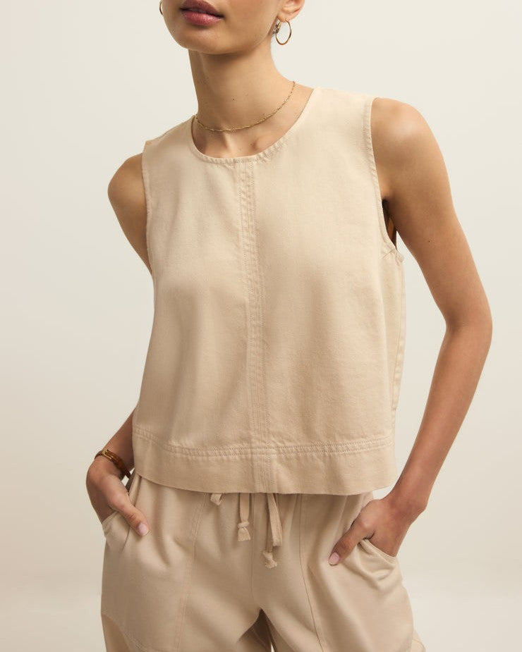 Soft and structured, this twill tank offers a modern twist on denim-inspired style. The fabric has a smooth, sun-washed feel that’s perfect for everyday wear. Pair it with your favorite bottoms for a relaxed look that feels pulled together.