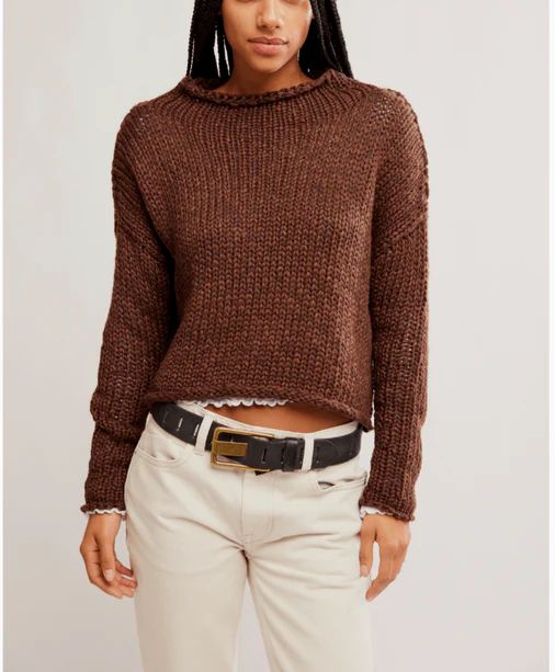 So light and perfect for any-season layering, this staple sweater is featured in an airy cotton knit with a rolled neckline and dropped shoulders for that laidback look.
