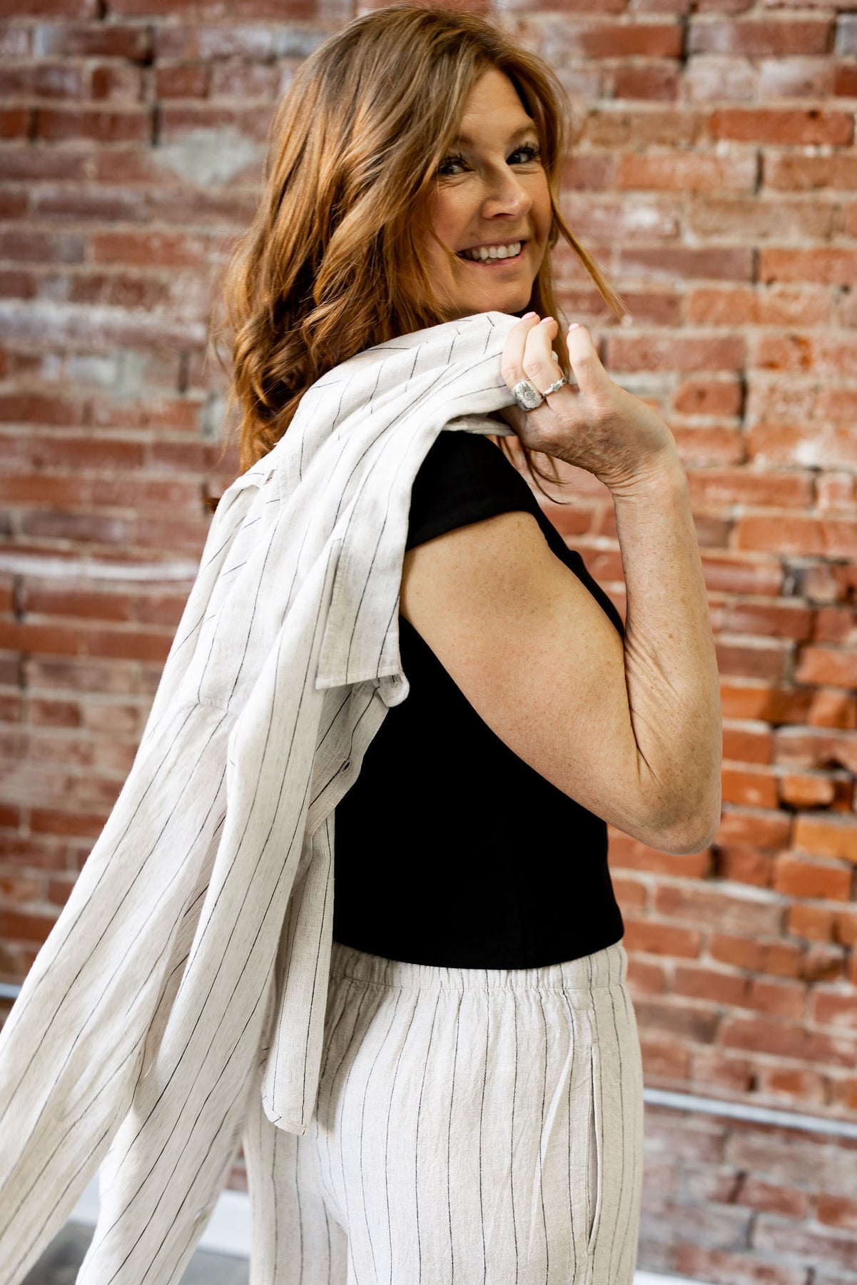 Featuring a button front, relaxed fit, and washed linen blend fabric, this lightweight top makes any outfit look timeless. We love it paired with the Henri Striped Wide Leg Pant.
