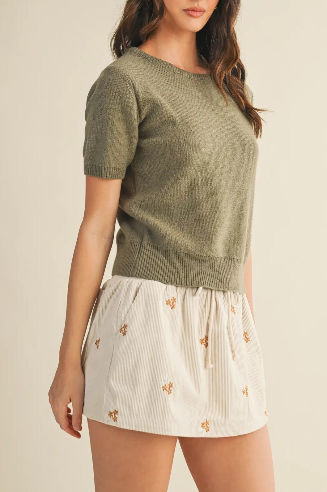 The Good Life Sweater offers a fresh take on cozy with its short sleeves and classic crew neck. Perfect for layering or wearing on its own, it blends comfort and style effortlessly for any season.