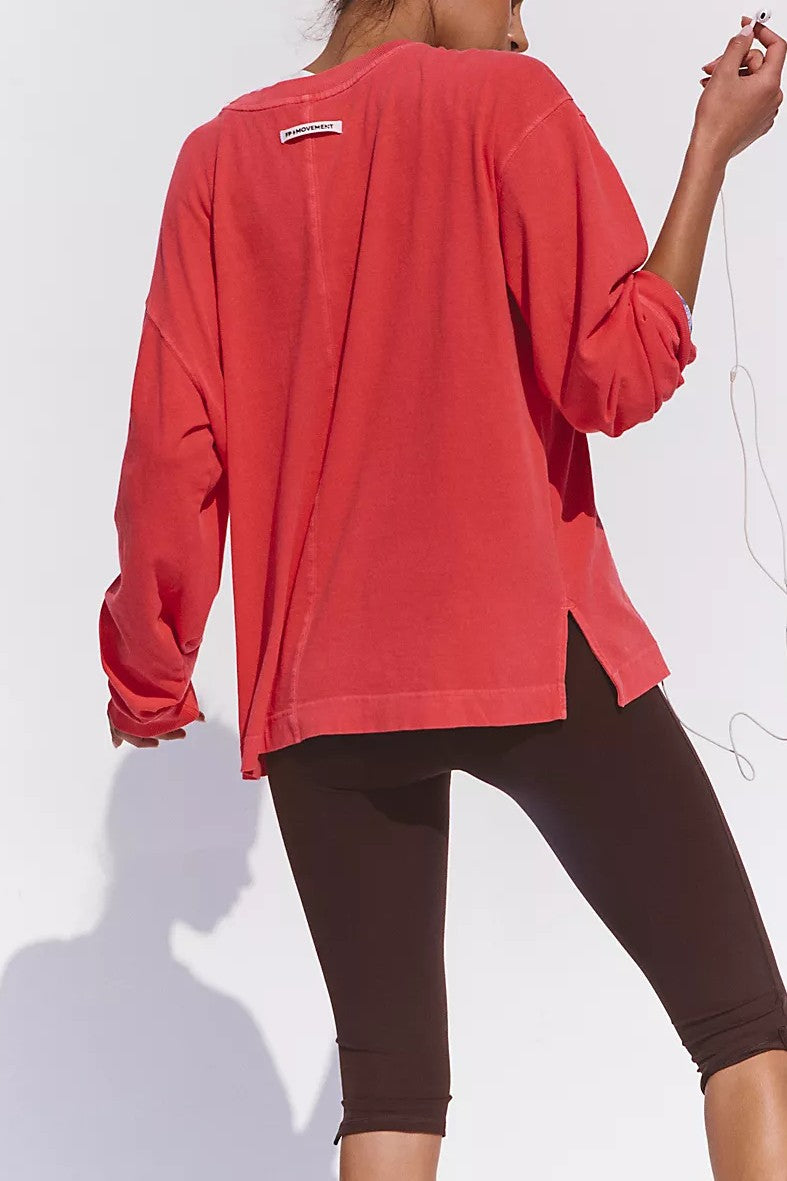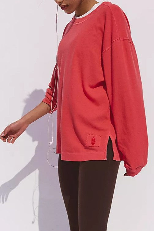 Sure to be your go-to pick to throw on over every fitness-focused ‘fit, this super versatile long sleeve is featured in a slouchy, relaxed fit and slightly worn fabrication for a true lived-in look. Relaxed, slouchy fit, scoop neckline; defined seaming; dropped shoulders; side slits at bottom