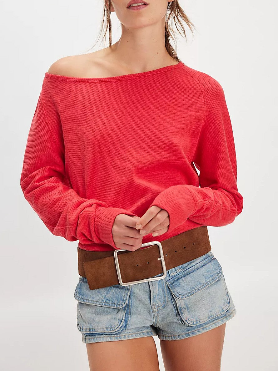 Free People -A cozy base for endless outfitting, this long sleeve from We The Free is featured in a thermal fabrication with a flattering boat neckline and slouchy dolman sleeves.