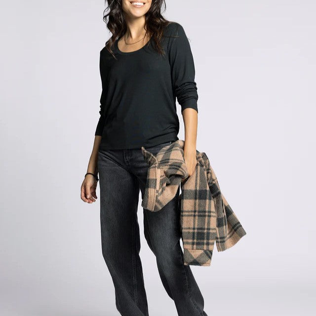 Relaxed and buttery soft, this scoop neck long sleeve is crafted from our micro model blend for a sleek, flattering feel. Lightweight and easy, it’s perfect tucked in or untucked.